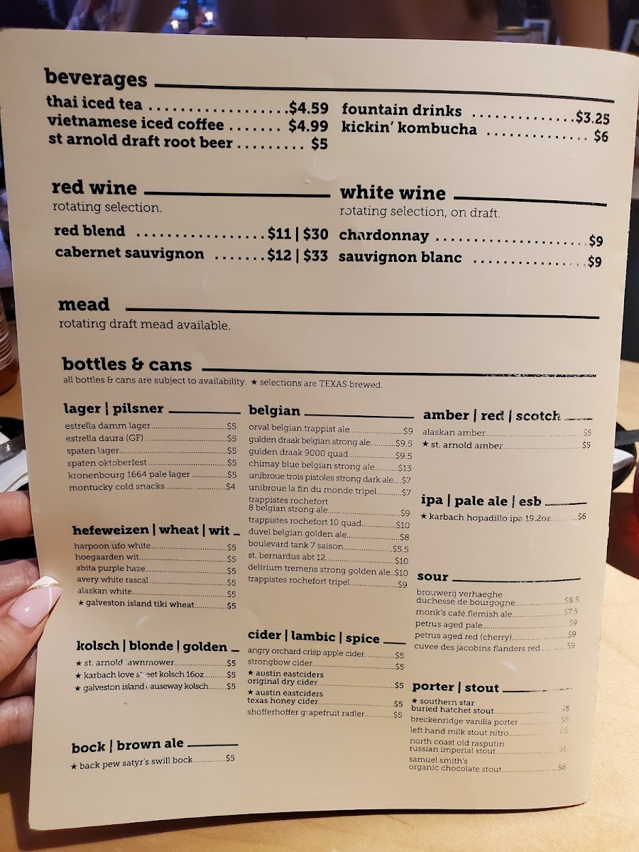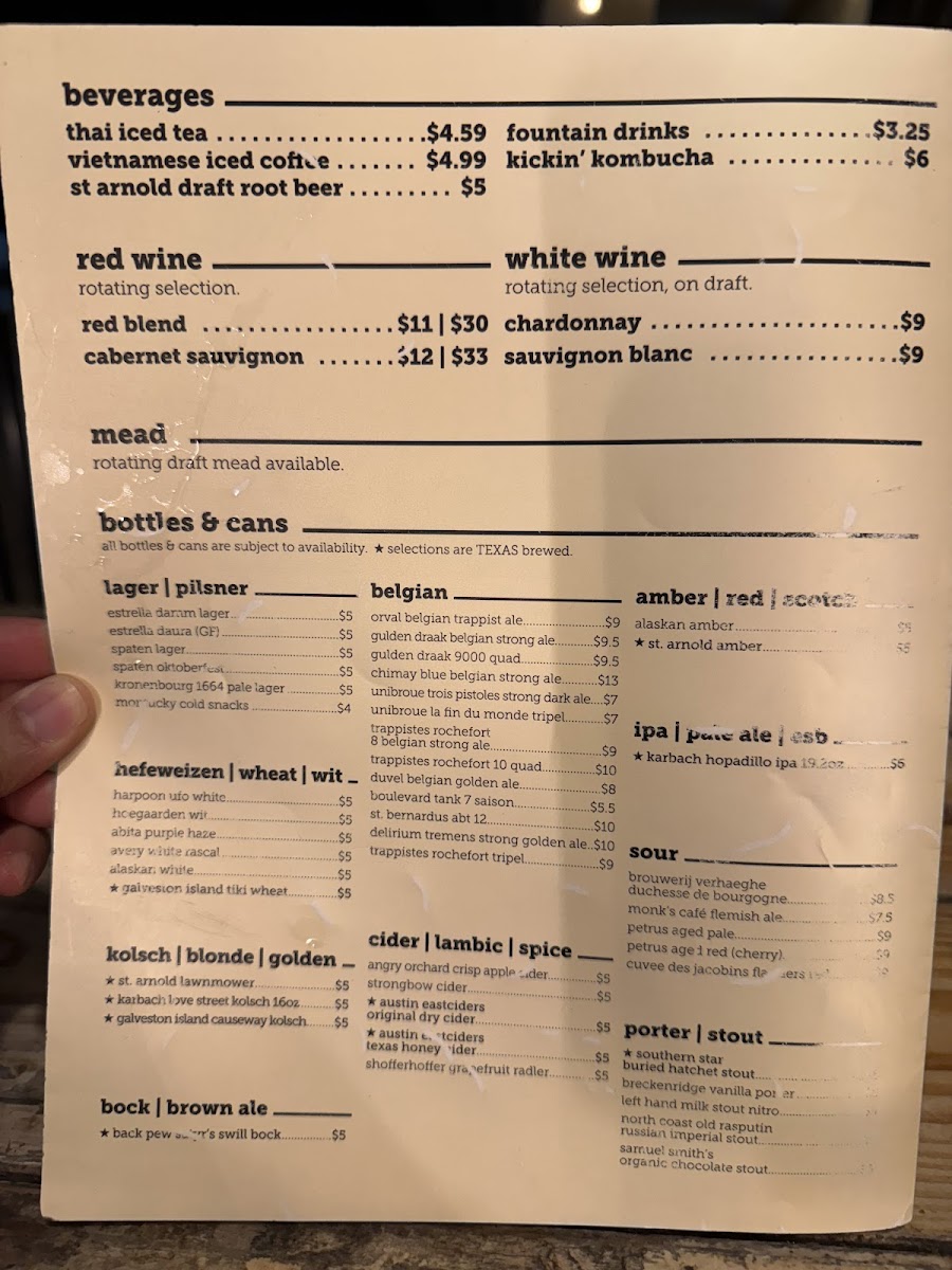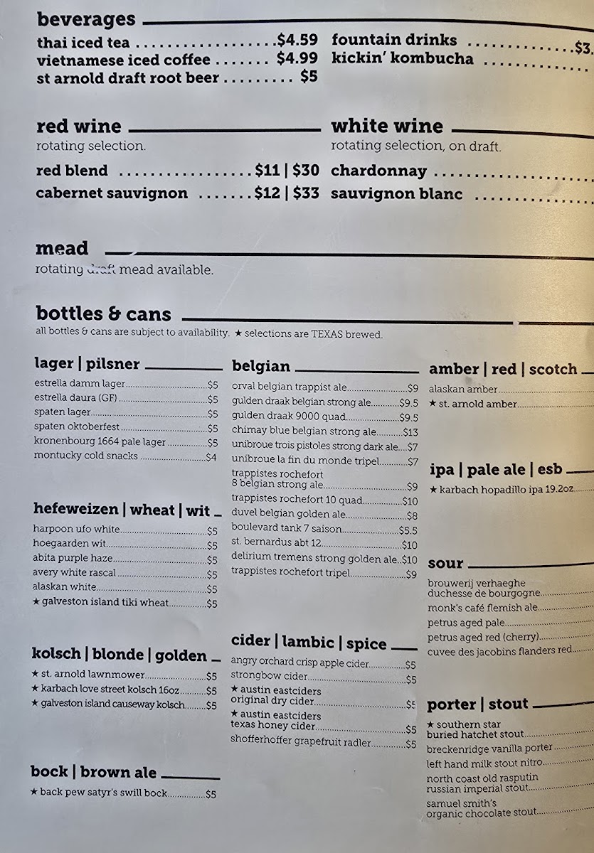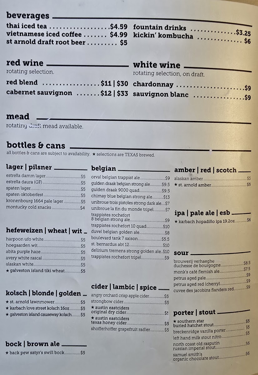 In addition to the food menu, a variety of craft beers and beverages such as root beer are available, aligning with the bar aspect of the restaurant. The menu is suitable for casual dining occasions, lunch, or dinner, offering options that accommodate both quick orders and more leisurely meals.
